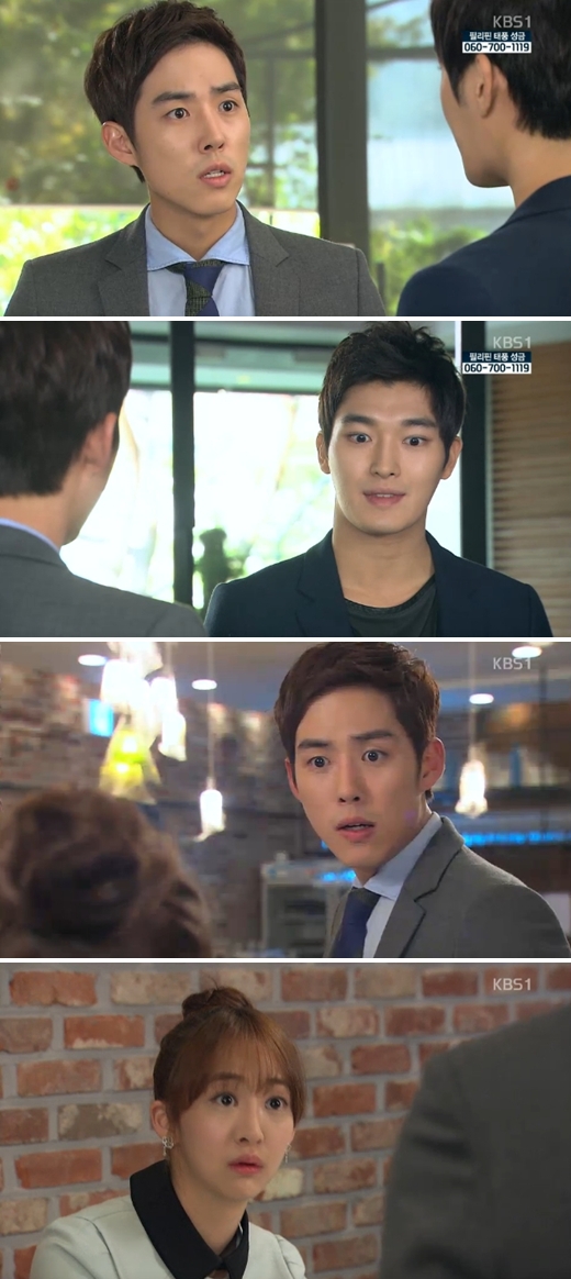 21일 오후 방송된 KBS 1TV 일일드라마 '사랑은 노래를 타고'(극본 홍영희·연출 이덕건)에서 박현우(백성현 분)는 한태경(김형준 분), 공수임(황선희 분)과 함께 레스토랑에 갔고 대화를 나누던 중 극단 대표 고은하(이은하 분)와 함께 들어오는 윤상현(곽희성 분)을 보게 됐다.