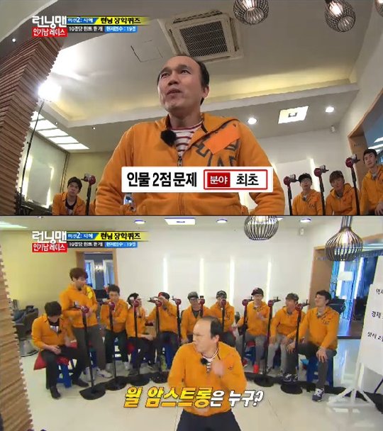 김광규는 15일 오후 방송된 SBS '일요일이 좋다-런닝맨'(이하 '런닝맨') 런닝 장학퀴즈에서 인류 최초의 달 착륙자를 묻는 질문에 윌 암스트롱이라고 답을 말해 멤버들의 원성을 자아냈다.