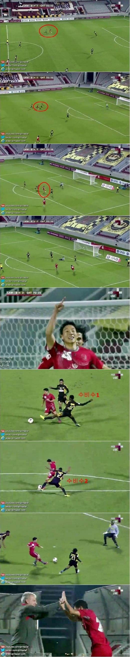 남태희의 골은 양 팀이 2-2로 팽팽하던 후반 26분 터졌다. 레크위야의 롱패스를 상대 수비수가 헤딩으로 걷어낸다는 것이 다소 짧았다. 이 실수를 최전방에 있던 남태희가 놓치지 않았다. 집중력을 발휘한 그는 공을 향해 달려가기 시작했다.