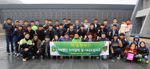 전북 현대 모터스 축구단(단장 이철근)이 8일 4년 연속 '약속의 땅' 브라질로 동계전지훈련을 떠났다. 전북은 "내달 11일 귀국하는 한 달 간의 일정으로 브라질 상파울루에서 동계 전지훈련을 실시한다"고 8일 밝혔다.