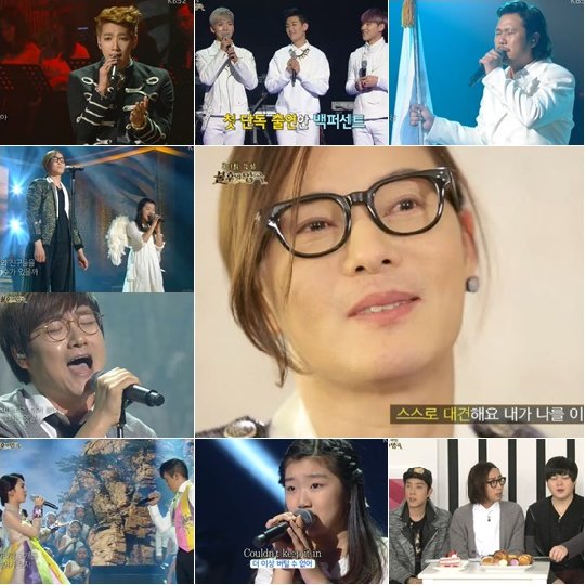 이날 방송은 3.1절 특집 외에도 대한민국을 노래하다는 부제가 있었다. 김종서를 비롯해 장미여관, 유리상자의 이세준, 2PM의 준케이 등 총 7팀은 혼신을 다한 무대를 선보였다. 특집답게 출연진들의 무대도 비장했고 엄숙했다. 제작진이 야심차게 준비한 흔적들이 보였다.