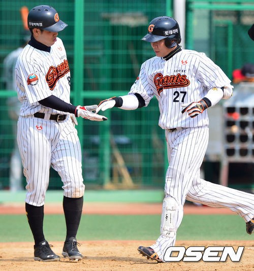 롯데 자이언츠의 용덕한(33)이 시범경기 첫 홈런포를 가동했다.