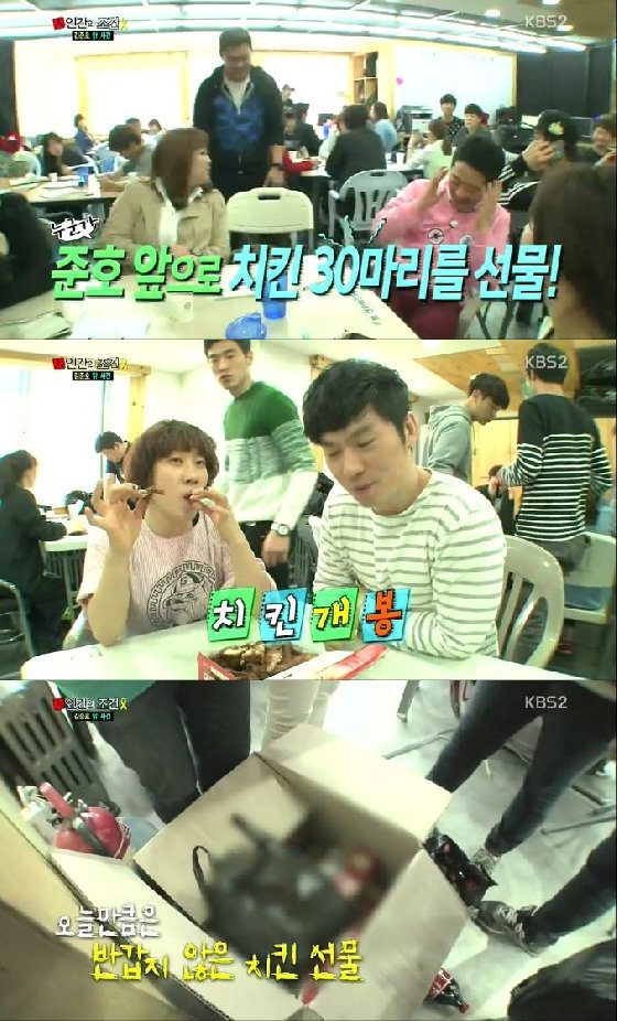 이날 '개그콘서트' 회의를 하던 김준호 앞으로 닭 30마리 선물이 도착했다. 모든 사람이 환호하고 즐거워했지만 김준호는 닭 뼈를 비롯해 각종 쓰레기가 나올 생각에 좌절했다.