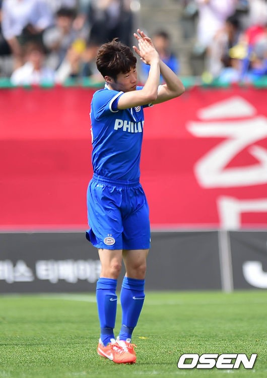 PSV 아인트호벤은 24일 오후 2시 경남 창원축구센터에서 열린 '2014 PSV 아인트호벤 코리아투어' 경남FC와의 친선경기에서 3-2로 승리했다. 이날 선발 출격한 박지성은 후반 8분 교체 아웃될 때까지 53분을 소화하며 팀 승리에 힘을 보탰다.