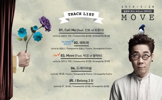 지난 26일 김연우의 소속사 미스틱89는 김연우의 공식 페이스북 계정과 미스틱89의 트위터 계정을 통해 28일 발매되는 김연우 새 미니앨범 'MOVE'의 트랙리스트를 공개했다. 'MOVE'는 김연우의 폭넓은 음악적 색채를 높인 앨범으로 알려졌다.