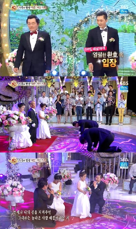 MC 강호동의 사회로 예물 교환 등 결혼식이 진행됐다. 이어, 두 사위는 진심을 담아 이적의 '다행이다'를 축가로 불렀고 이를 지켜보는 패널들의 눈가에 감동의 눈물을 짓게 했다.