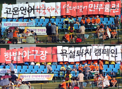 한화 이글스는 지난 5월 31일 대전구장에서 펼쳐진 SK와이번스와 경기에서 언어문화 개선을 위한 ‘야구장 욕설퇴치 캠페인’을 실시했다.