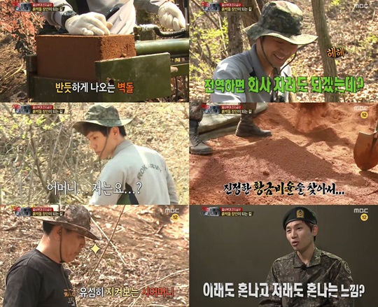 케이윌과 반대로 천정명에게는 칭찬이 쏟아졌다. 기계를 이용해 흙벽돌을 만드는 작업을 맡은 천정명에게 담당관은 "전역하고 벽돌 회사를 차려도 되겠다"며 극찬했다.