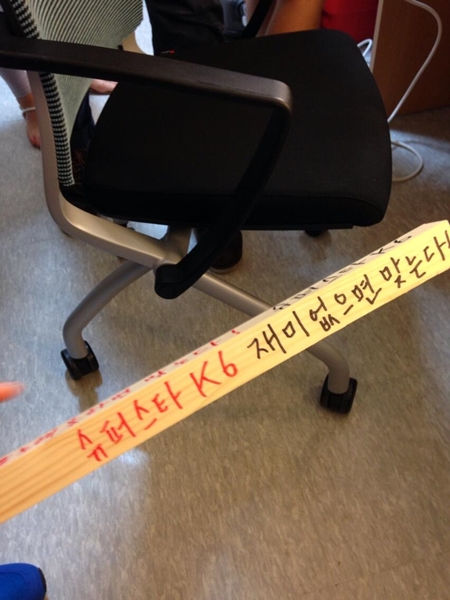 이승철이 공개한 사진에는 ''슈퍼스타K6' 재미없으면 맞는다'는 문구가 담긴 각목이 있다.