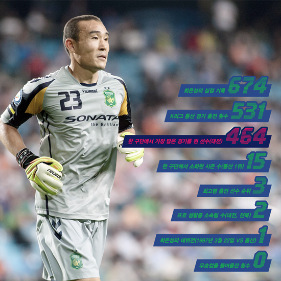 아름다운 은퇴식을 준비 중인 최은성의 K리그 기록들을 숫자로 풀어봤다.