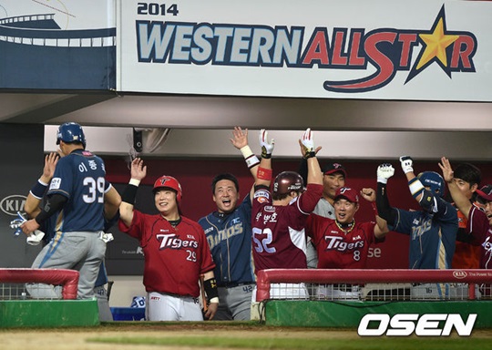 웨스턴리그가 나지완의 쓰리런 홈런과 함께 올스타전 역대 팀 최다득점 신기록을 달성했다.