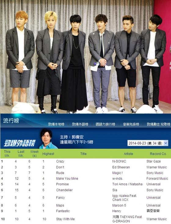 엔소닉은 지난 26일 발표된 홍콩 메트로 라디오(www.metroradio.com.hk) 국제 뮤직 차트에서 1위를 차지했다. 에드 시런, 마룬5, 빅뱅 태양, 헨리 등 국내외 쟁쟁한 가수들을 제치고 당당히 차트 순위 1위에 등극하며 홍콩에서 뜨거운 인기를 증명한 셈.