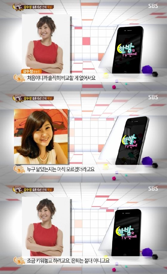 이날 방송에서는 홍콩에서 생활하는 강수정에게 전화해 득남 소식을 축하하면서 출산에 대한 어려움을 물었다. 강수정은 "처음이니까 솔직히 비교할게 없어다. 아기 얼굴 보니 힘들고 말고도 없다. 아기가 정말 귀엽다"고 웃으며 답했다.