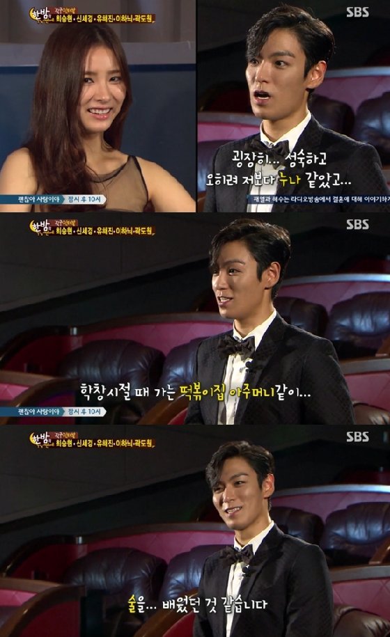 최승현은 "신세경 씨 같은 경우에는 생각보다 성숙하고 저보다 누나 같았다"고 털어 놓았다. 최승현의 돌직구 발언에 이하늬는 "여자는 그런거 싫어해"라고 소리쳤다.