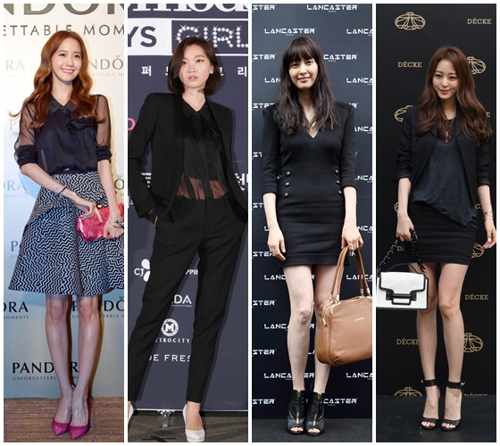 소녀시대 윤아, 모델 겸 방송인 장윤주, 배우 이나영, 한예슬이 블랙룩으로 스타일 장외 대결을 펼쳤다.