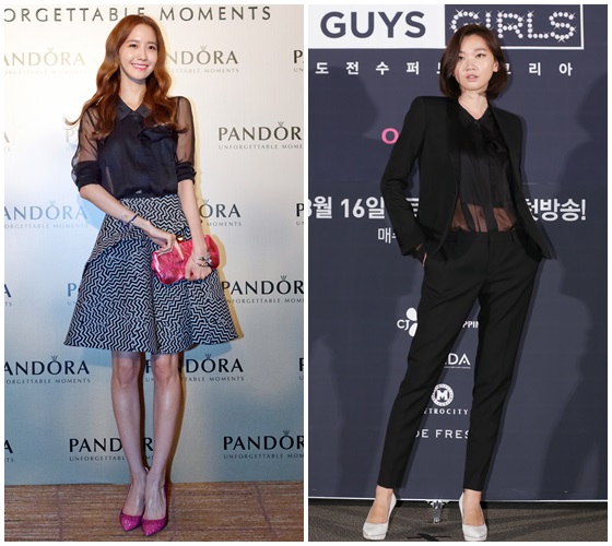 지난 달 케이블 채널 On Style '도전 슈퍼모델 코리아 GUYS & GIRLS' 제작발표회 때 장윤주가 착용한 블라우스는 윤아가 판도라 행사에서 착용한 것과 동일 제품으로, 같은 옷이라고 믿기 어려울 만큼 상반된 스타일링이 매우 인상적이다.