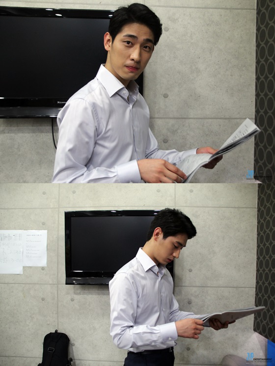 15일 JYP ACTORS 공식 홈페이지(http://www.jypactors.com)를 통해 공개된 사진 속 윤박은 말끔한 와이셔츠 차림으로 대기실 한 쪽에서 대본을 숙지하고 있다.