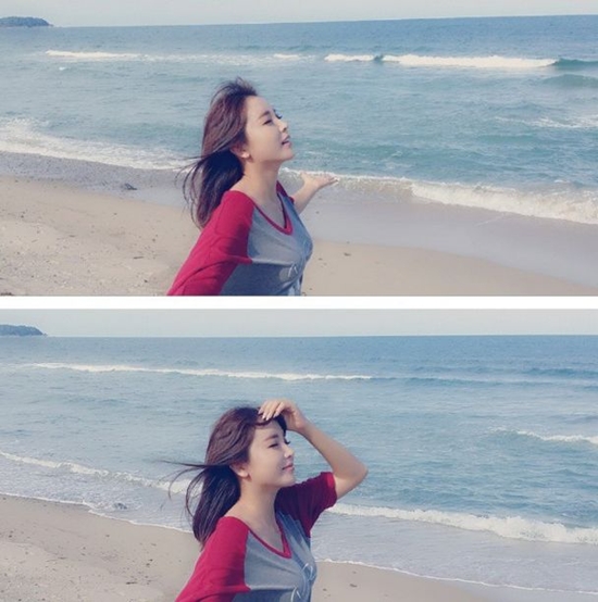 가수 홍진영이 가을 바다에서 추억을 쌓았다.