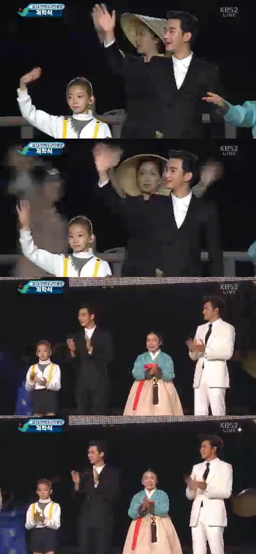 배우 김수현이 '2014 인천 아시안 게임 개막식'에 등장했다.