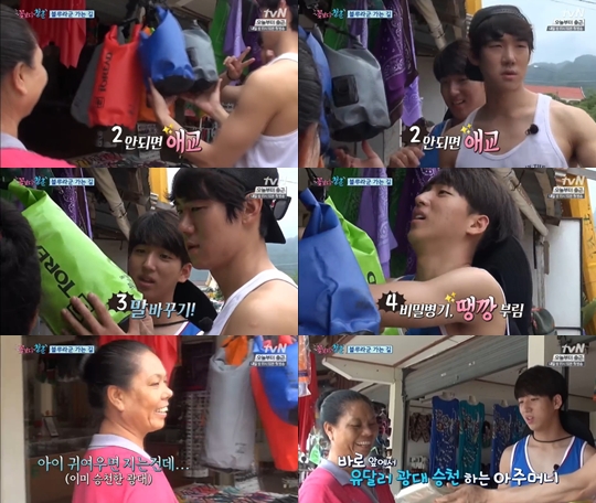 '꽃보다 청춘' 흥정을 위한 바로의 폭풍 애교에 현지인이 호감을 표했다.