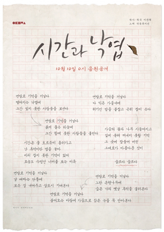 악동뮤지션의 신곡 '시간과 낙엽'은 지난 4월 발표한 데뷔 앨범 'PLAY'에서 공개하지 않았던 히든 트랙으로 이찬혁이 작사, 작곡한 노래다. 특히 시적인 가사가 인상적이며 악동뮤지션이 기존에 보여준 발랄하고 귀여운 매력과는 또 다른 성숙한 매력을 잘 보여주고 있다.