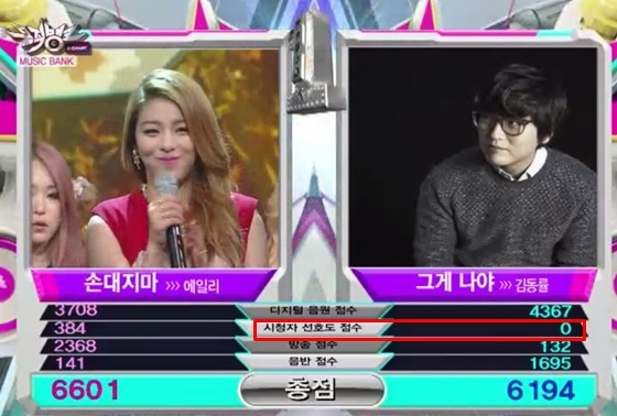 그렇지는 않다. '뮤직뱅크'의 시청자선호도 점수 산출 방법에 비밀 아닌 비밀이 있다.