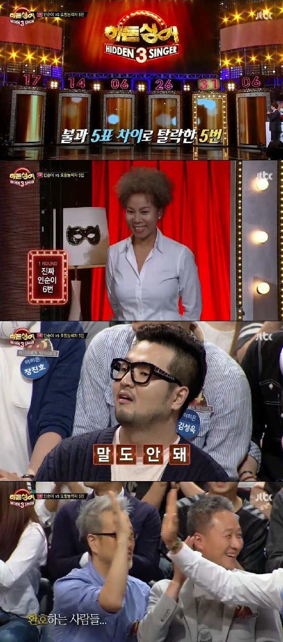 11일 방송된 JTBC '히든싱어3'에서는 원조가수로 인순이가 출연해 모창능력자들과 대결을 벌였다.