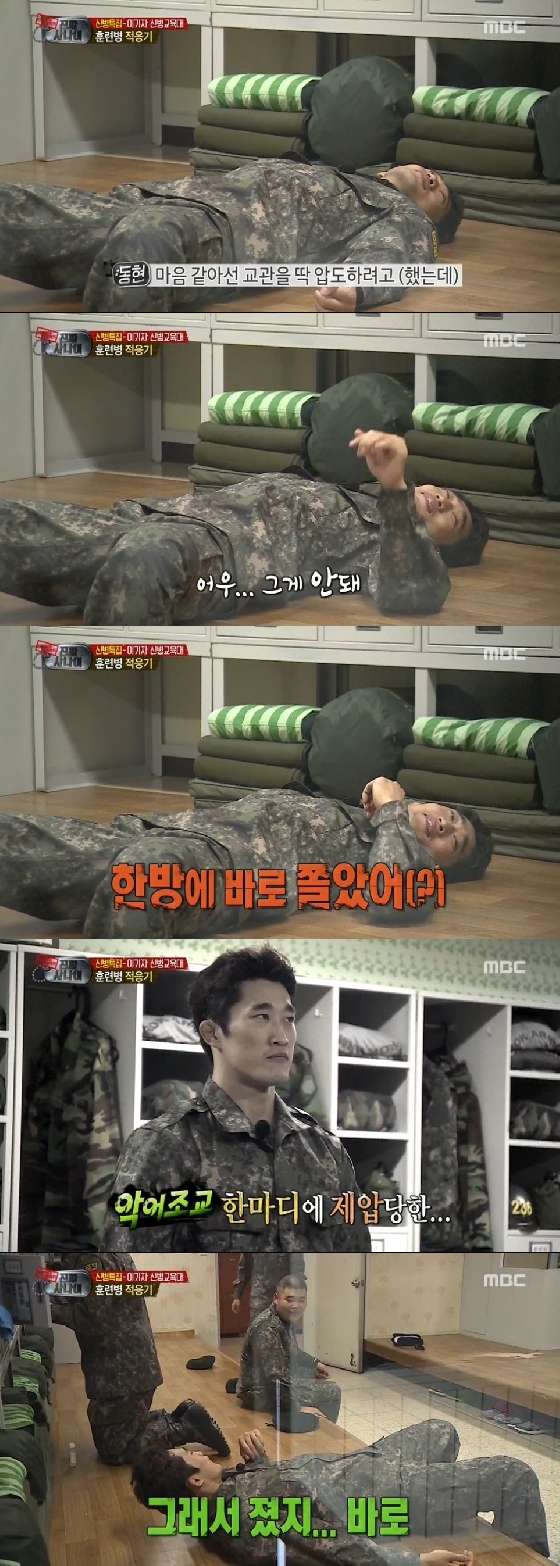 이날 해병대 출신인 이종격투기 UFC 선수 김동현은 훈련소 입소 전 군 생활에 대한 강한 자신을 보였다. 그러나 김동현은 '악어 조교'라는 별명을 가진 분대장에게 연이은 지적을 받으며 의기소침 해졌다.