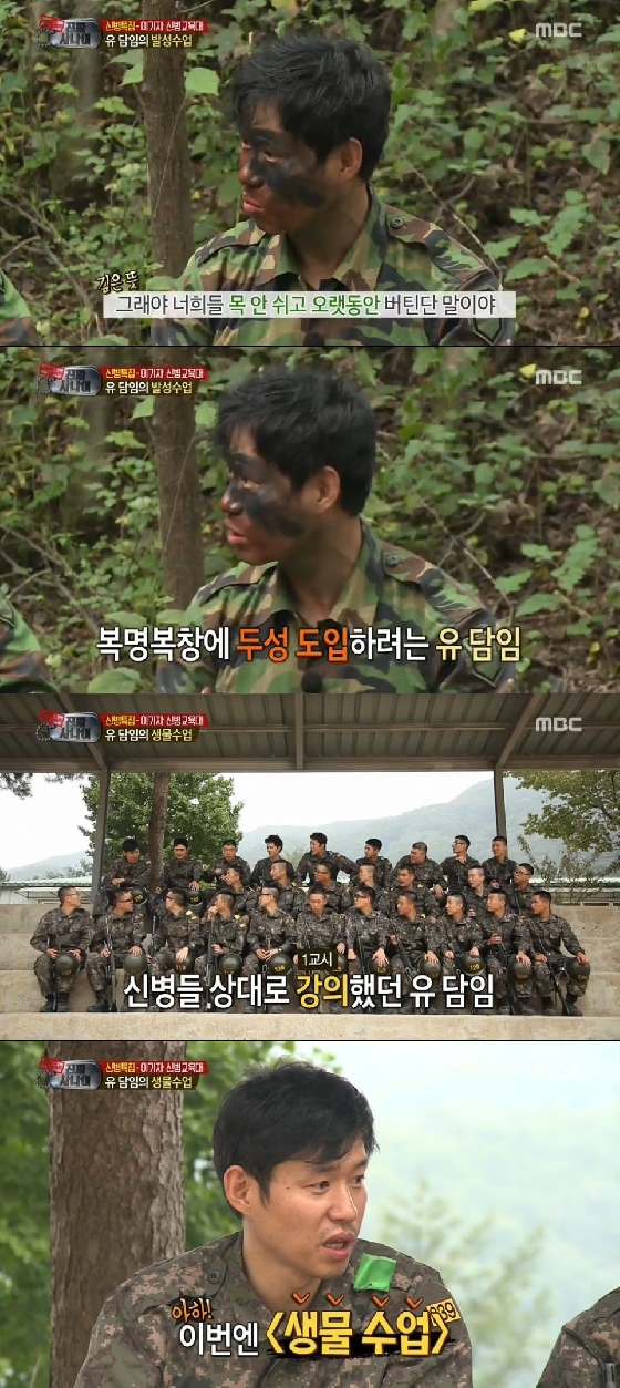 이날 유준상은 이기자 부대를 전역한 선배로써 훈련병들을 자상히 챙겼다. 유준상은 훈련병들에게 두성을 가르치며 목이 안 쉬고 오랫동안 소리를 지를 수 있는 방법을 전수했다. 훈련병들은 유준상의 가르침을 받으며 쉬는 시간 내내 소리를 지르며 연습을 했다.