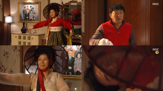 20일 오후 방송된 MBC 일일드라마 '압구정 백야'(연출 배한천 최준배, 극본 임성한)에서 문정애(박혜숙 분)는 남편 장추장(임채무 분)을 위해 어우동으로 변신했다.