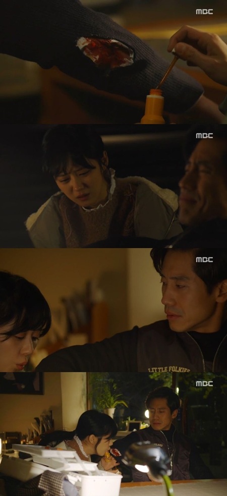 20일 오후 방송된 MBC 수목드라마 '미스터 백'(극본 최윤정·연출 이상엽)에서는 술에 취한 최신형(신하균 분)의 팔에 난 상처를 은하수(장나라 분)가 직접 치료해주는 모습이 그려졌다.