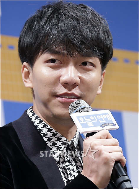 가수 겸 배우 이승기가 16일 오전 서울 강남구 신사동 압구정 CGV에서 열린 영화 '오늘의 연애' 제작보고회에 참석해 인사말을 하고 있다.