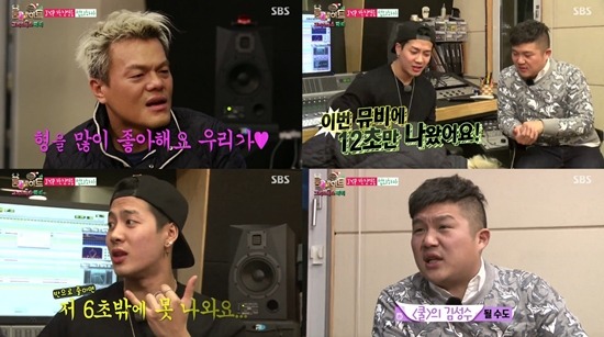 16일 오후 방송된 SBS 예능프로그램 '룸메이트 시즌2'(이하 '룸메이트')에서는 멤버들이 크리스마스 연말파티를 준비해 초특급 게스트로 박진영을 초대하는 모습이 그려졌다.