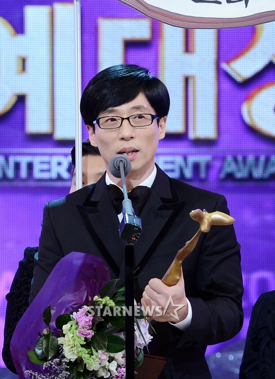유재석은 지난 27일 오후 열린 2014 KBS 연예대상 시상식에서 영예의 대상을 받았다. 지난 2005년 KBS연예대상에서 대상을 수상한 이후 9년 만에 다시 KBS 연예대상 대상을 받았다.