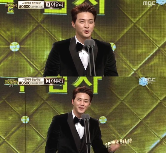 이날 연속극 부문 최우수상에는 '왔다! 장보리'의 김지훈, '모두다 김치'의 김호진, '빛나는 로맨스' 박윤재가 후보로 올라 경합을 벌였다.