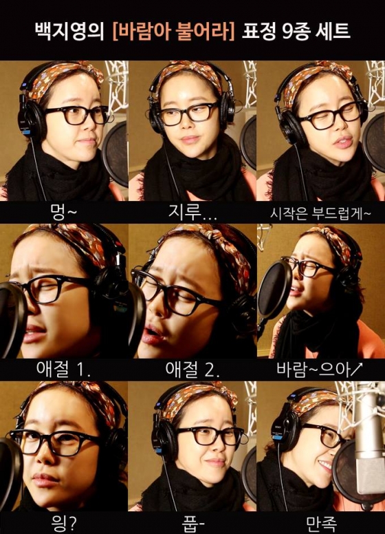 가수 백지영의 녹음 표정이 웃음을 자아낸다.