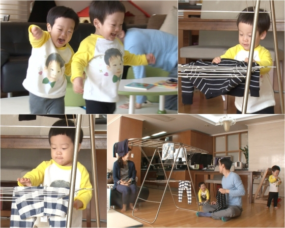 앞서 진행된 녹화에서 서언은 엄마가 빨래 건조대에 빨래 너는 모습을 보고 눈을 반짝였다. 이어 의기양양하게 빨래 하나를 집어 들고는 탈탈 털기 시작했다. 서언은 온 몸이 다 휘청휘청할 정도로 열혈 빨래 털기를 선보이더니 건조대에 척 하고 널어 웃음을 선사했다.