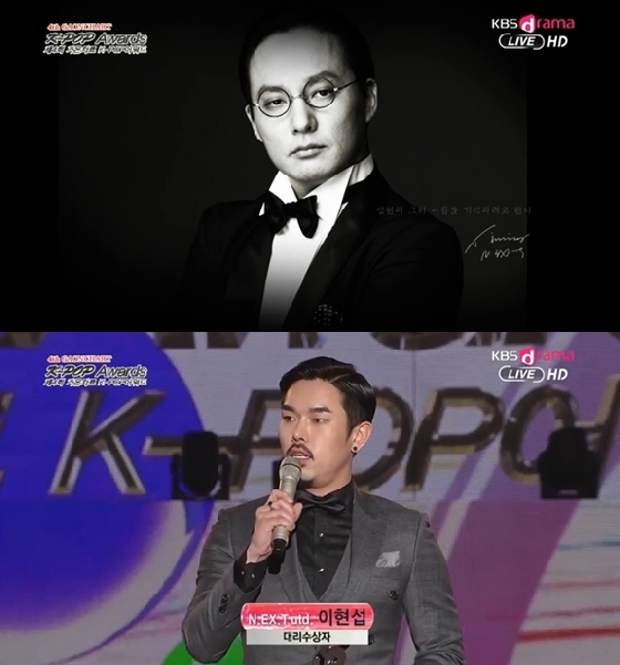 고 신해철은 28일 오후 7시 서울 송파구 방이동 올림픽공원 체조경기장에서 열린 제 4회 가온차트 K-POP 어워드에서 K팝 공헌상을 받았다. 고인을 대신해 그룹 넥스트가 대리 수상했다.