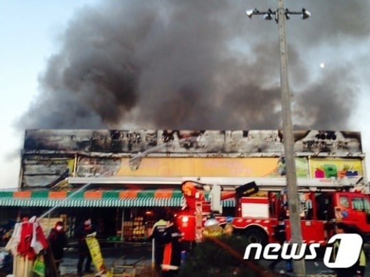 불은 지상 2층인 샌드위치패널 구조의 마트 건물을 모두 태운 뒤 1시간여 만에 진압됐다. 불이 난 사무실은 이 건물 출입구로부터 가장 멀리 떨어진 구석진 곳에 위치해 있어 대피로는 막히지 않아 다른 인명피해는 없었다.
