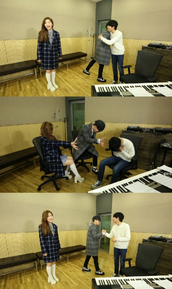 앞서 진행된 정승환과 악동뮤지션의 만남은 다소 어색하게 시작됐지만 훈훈하게 마무리됐다. 스무 살 동갑내기인 까닭에 금세 친구가 된 이찬혁과 정승환은 격한 포옹을 하기도 하고 장난스럽게 하이파이브도 했다. 또 앞서 방송에서 정승환의 노래를 듣고 자신의 SNS에 감동 후기를 올리기도 했던 이수현은 정승환과 즐거운 만남을 가졌다는 전언이다.