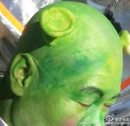 이광수는 10일 자신의 웨이보(SNS)에 슈렉으로 변신한 지석진의 사진을 게재했다. "사랑하는 석진이형 생일축하해요. 왕코파워♡"라는 글을 덧붙여 지석진의 생일 축하도 빼놓지 않았다.