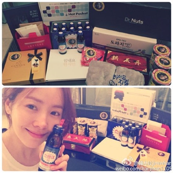한지민은 지난 23일 자신의 웨이보(SNS)에 팬들을 향한 마음과 선물 인증 사진을 남겼다.