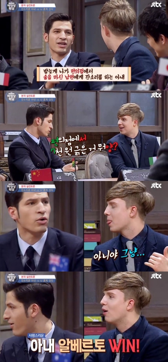 '비정상회담' 알베르토가 잔소리 하는 아내의 사랑스러움을 완벽하게 표현해냈다.
