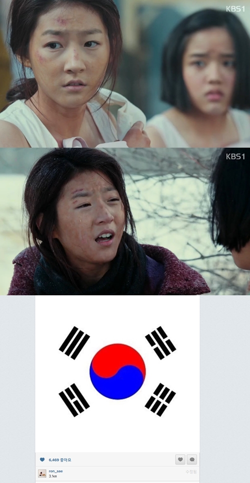'눈길'에서 열연을 펼친 김새론이 자신의 인스타그램에 삼일절을 맞아 태극기 사진을 게재했다.