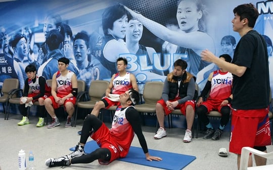 우선 농구는 높이의 스포츠. 두 팀의 5일 출전선수 신장을 비교해 보면 예체능이 184.75㎝로 176.5㎝의 우먼프레스보다 8㎝ 가량 높다. 힘과 스피드에서 앞서는 남자팀이 높이에서도 8㎝ 앞서고 있는 것.