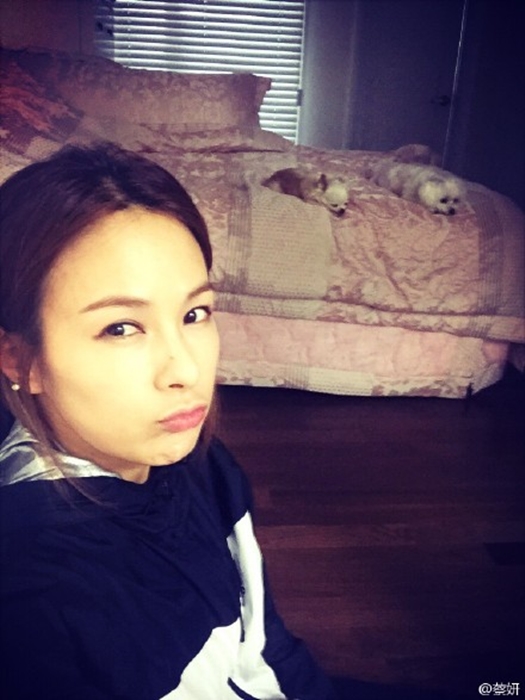 공개된 사진 속 채연은 분홍 침대를 배경으로 뾰루퉁한 표정을 짓고 있다. 애완견 두 마리가 침대를 차지해 투정 아닌 투정을 부리는 것. 새침한 채연과는 달리 강아지들은 무심한 듯 편히 휴식을 취해 웃음을 자아냈다.