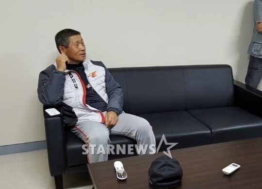 한 달 사이 그의 표정은 '180도' 바뀌어 있었다. '야신' 김성근 감독. 그는 취재진과 이야기를 나누는 내내 맑고 밝은 표정을 지었다. 특유의 유머러스함과 재치 있는 발언이 계속 이어졌다.
