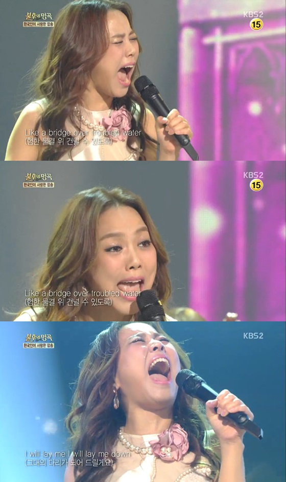 이날 소향은 사이먼 앤 가펑클의 'Bridge Over Troubled Water'를 선곡해 잔잔한 감미로움과 소름 돋는 고음처리를 완벽히 소화해 관객들의 기립박수를 이끌어냈다.