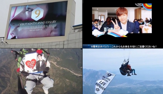 일본 팬들은 일본의 번화가에 이민호 거리를 조성하고 대형 가로수 배너와 대형 스크린에 축하 메시지를 송출하는 것은 물론 한국의 신사, 강남, 홍대역 부근에 8시간동안 전광차량을 운행하기도 했다. 지진 피해자를 위한 성금으로 수천 만 원의 기부를 진행했던 중국 팬들은 현대로 이민호를 위해 기금을 운영 중일 뿐만 아니라 각종 영상메시지를 전해오고 있다.