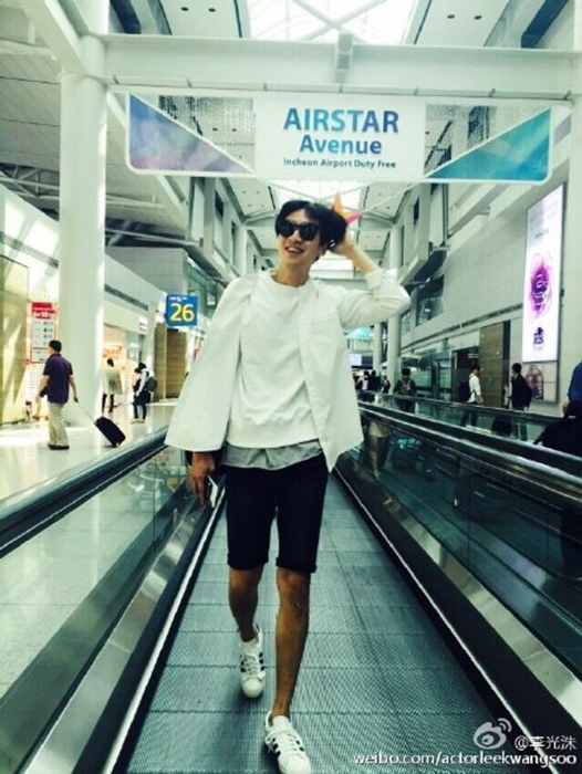 사진에서 이광수는 공항 에스컬레이터 위를 걷고 있다. 한 손으로 뒷머리를 헝클어트리며 시크한 매력을 발산한 이광수는 특유의 빙구 미소로 털털함을 더해 팬들의 마음을 사로잡았다.
